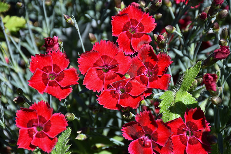 Hardiness Zone: 3 Other Names: Border Pinks, Cheddar Pinks Group/Class: Whetman Star Series Description: Stunning flowers are fire red with a darker crimson centre above mounds of fine foliage; great for flower arrangements; deadhead to rebloom; pair up with summer blooming perennials and annuals to time a continued flower display Ornamental Features Fire Star Pinks has masses of beautiful fragrant red frilly flowers with crimson centers at the ends of the stems from late spring to mid summer, which are most effective when planted in groupings. The flowers are excellent for cutting. Its attractive narrow leaves remain grayish green in colour throughout the year. Landscape Attributes Fire Star Pinks is an herbaceous evergreen perennial with a mounded form. It brings an extremely fine and delicate texture to the garden composition and should be used to full effect. This is a relatively low maintenance plant, and is best cleaned up in early spring before it resumes active growth for the season. It is a good choice for attracting bees and butterflies to your yard, but is not particularly attractive to deer who tend to leave it alone in favor of tastier treats. It has no significant negative characteristics. Fire Star Pinks is recommended for the following landscape applications;