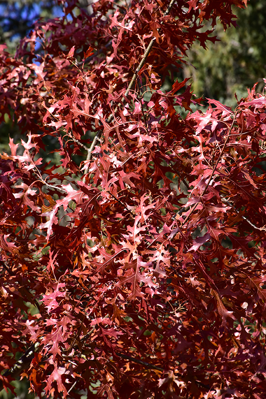 Hardiness Zone: 3 Other Names: Hill's Oak Brand: First Editions Description: An attractive shade tree with a pyramidal-oval habit of growth, pointy leaves and excellent rich red fall color; this variety produces straighter branching, substantial foliage and a more symmetrical shape; a great shade tree choice Ornamental Features Majestic Skies™ Northern Pin Oak has dark green deciduous foliage which emerges brick red in spring on a tree with an oval habit of growth. The glossy lobed leaves turn an outstanding red in the fall. However, the fruit can be messy in the landscape and may require occasional clean-up. The furrowed gray bark and silver branches add an interesting dimension to the landscape. Landscape Attributes Majestic Skies™ Northern Pin Oak is a deciduous tree with a shapely oval form. Its average texture blends into the landscape, but can be balanced by one or two finer or coarser trees or shrubs for an effective composition. This tree will require occasional maintenance and upkeep, and is best pruned in late winter once the threat of extreme cold has passed. It is a good choice for attracting squirrels to your yard. Gardeners should be aware of the following characteristic(s) that may warrant special consideration;