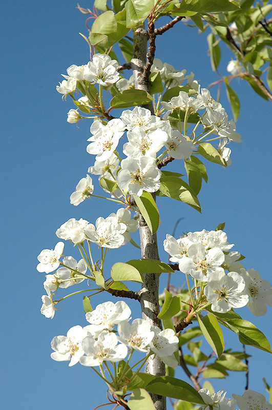 Features & Attributes Summercrisp Pear is clothed in stunning clusters of white flowers with purple anthers along the branches in mid spring. It has dark green deciduous foliage. The glossy oval leaves turn an outstanding burgundy in the fall. The fruits are showy chartreuse pears with a red blush, which are carried in abundance in late summer. The fruit can be messy if allowed to drop on the lawn or walkways, and may require occasional clean-up. This is a dense deciduous tree with a shapely oval form. Its average texture blends into the landscape, but can be balanced by one or two finer or coarser trees or shrubs for an effective composition. This is a high maintenance plant that will require regular care and upkeep, and is best pruned in late winter once the threat of extreme cold has passed. Gardeners should be aware of the following characteristic(s) that may warrant special consideration;
