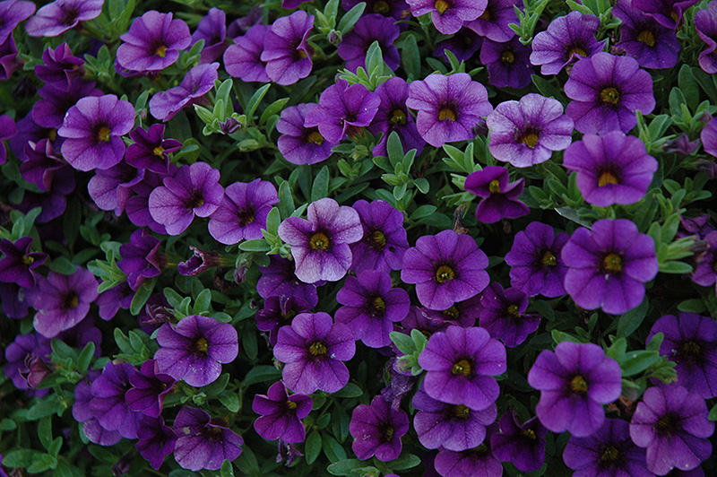 Planting & Growing Cabaret® Deep Blue Calibrachoa will grow to be about 10 inches tall at maturity, with a spread of 18 inches. When grown in masses or used as a bedding plant, individual plants should be spaced approximately 12 inches apart. Its foliage tends to remain low and dense right to the ground. This fast-growing annual will normally live for one full growing season, needing replacement the following year. This plant does best in full sun to partial shade. It does best in average to evenly moist conditions, but will not tolerate standing water. It is not particular as to soil type or pH. It is highly tolerant of urban pollution and will even thrive in inner city environments. This particular variety is an interspecific hybrid. It can be propagated by cuttings; however, as a cultivated variety, be aware that it may be subject to certain restrictions or prohibitions on propagation. Cabaret® Deep Blue Calibrachoa is a fine choice for the garden, but it is also a good selection for planting in outdoor containers and hanging baskets. Because of its trailing habit of growth, it is ideally suited for use as a 'spiller' in the 'spiller-thriller-filler' container combination; plant it near the edges where it can spill gracefully over the pot. Note that when growing plants in outdoor containers and baskets, they may require more frequent waterings than they would in the yard or garden. Characteristics