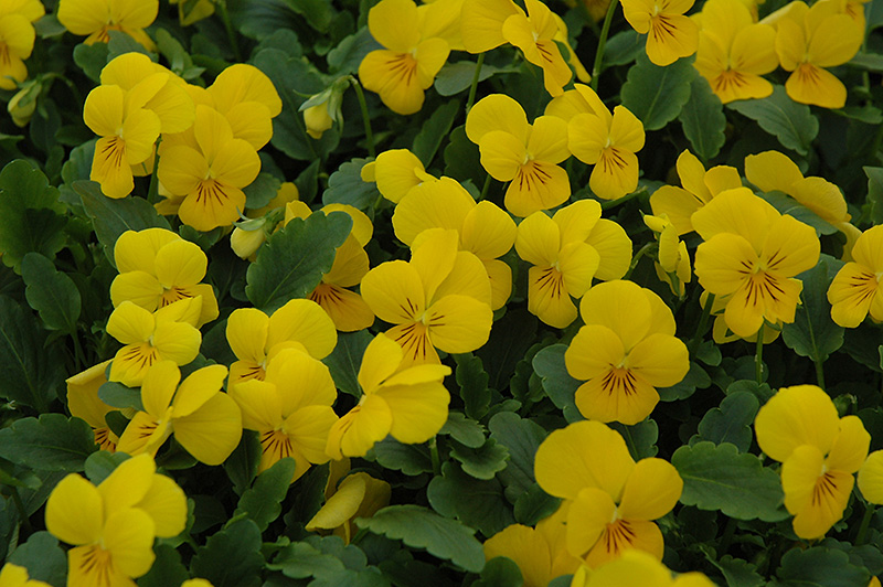 Hardiness Zone: 4 Other Names: Winter Pansy, Violet Group/Class: Sorbet Series Brand: Ball Description: A stunning pansy series presenting incredible blooms that immediately command attention; more heat tolerant and cold hardy than other varieties; creates visually captivating containers, or border edgings Ornamental Features Sorbet® XP Yellow Pansy has masses of beautiful yellow flowers with dark brown streaks at the ends of the stems from early spring to late fall, which are most effective when planted in groupings. Its crinkled round leaves remain green in colour throughout the season. Landscape Attributes Sorbet® XP Yellow Pansy is an herbaceous perennial with a mounded form. Its relatively fine texture sets it apart from other garden plants with less refined foliage. This plant will require occasional maintenance and upkeep, and should only be pruned after flowering to avoid removing any of the current season's flowers. Deer don't particularly care for this plant and will usually leave it alone in favor of tastier treats. Gardeners should be aware of the following characteristic(s) that may warrant special consideration;