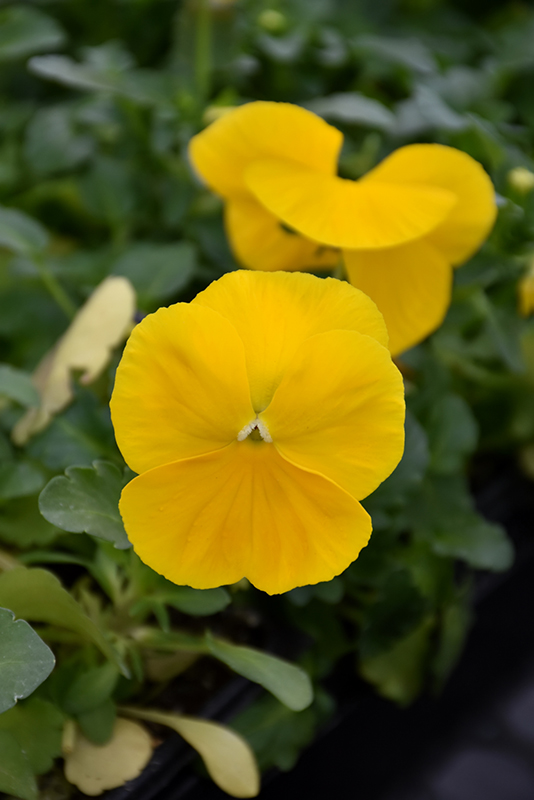 Planting & Growing Sorbet® XP Yellow Pansy will grow to be only 6 inches tall at maturity extending to 8 inches tall with the flowers, with a spread of 6 inches. When grown in masses or used as a bedding plant, individual plants should be spaced approximately 5 inches apart. It grows at a fast rate, and tends to be biennial, meaning that it puts on vegetative growth the first year, flowers the second, and then dies. However, this variety tends to self-seed and will thereby endure for years in the garden if allowed, although because it is a hybrid, the seedlings may not come true to type. As an herbaceous perennial, this plant will usually die back to the crown each winter, and will regrow from the base each spring. Be careful not to disturb the crown in late winter when it may not be readily seen! This plant does best in full sun to partial shade. It prefers to grow in average to moist conditions, and shouldn't be allowed to dry out. It is not particular as to soil type or pH. It is highly tolerant of urban pollution and will even thrive in inner city environments. Consider covering it with a thick layer of mulch in winter to protect it in exposed locations or colder microclimates. This particular variety is an interspecific hybrid. Sorbet® XP Yellow Pansy is a fine choice for the garden, but it is also a good selection for planting in outdoor pots and containers. It is often used as a 'filler' in the 'spiller-thriller-filler' container combination, providing a mass of flowers against which the thriller plants stand out. Note that when growing plants in outdoor containers and baskets, they may require more frequent waterings than they would in the yard or garden. Be aware that in our climate, most plants cannot be expected to survive the winter if left in containers outdoors, and this plant is no exception. Contact our experts for more information on how to protect it over the winter months. Characteristics