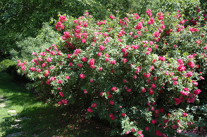 Hardiness Zone: 2 Group/Class: Explorer Rose Description: One of the hardiest climbers, this vigorous rose featuring fragrant double rosy red flowers in early summer and through into fall, and is resistant to disease; a wonderful selection for trailing over arbors and fences; needs full sun and well-drained soil Ornamental Features John Cabot Rose is draped in stunning fragrant semi-double fuchsia flowers with hot pink overtones and yellow eyes along the branches from late spring to late summer. The flowers are excellent for cutting. It has dark green deciduous foliage. The oval compound leaves turn yellow in fall. The fruits are showy orange hips displayed from mid to late fall. The spiny brick red bark adds an interesting dimension to the landscape. Landscape Attributes John Cabot Rose is a multi-stemmed deciduous woody vine with a twining and trailing habit of growth. Its average texture blends into the landscape, but can be balanced by one or two finer or coarser trees or shrubs for an effective composition. This is a high maintenance woody vine that will require regular care and upkeep, and is best pruned in late winter once the threat of extreme cold has passed. Gardeners should be aware of the following characteristic(s) that may warrant special consideration;