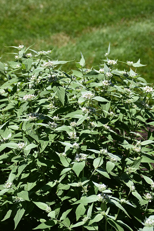 Planting & Growing Hoary Mountain Mint will grow to be about 3 feet tall at maturity, with a spread of 4 feet. When grown in masses or used as a bedding plant, individual plants should be spaced approximately 4 feet apart. It grows at a fast rate, and under ideal conditions can be expected to live for approximately 5 years. As an herbaceous perennial, this plant will usually die back to the crown each winter, and will regrow from the base each spring. Be careful not to disturb the crown in late winter when it may not be readily seen! This plant does best in full sun to partial shade. It is very adaptable to both dry and moist growing conditions, but will not tolerate any standing water. It is not particular as to soil type or pH. It is highly tolerant of urban pollution and will even thrive in inner city environments. This species is native to parts of North America. Hoary Mountain Mint is a fine choice for the garden, but it is also a good selection for planting in outdoor pots and containers. With its upright habit of growth, it is best suited for use as a 'thriller' in the 'spiller-thriller-filler' container combination; plant it near the center of the pot, surrounded by smaller plants and those that spill over the edges. It is even sizeable enough that it can be grown alone in a suitable container. Note that when growing plants in outdoor containers and baskets, they may require more frequent waterings than they would in the yard or garden. Be aware that in our climate, most plants cannot be expected to survive the winter if left in containers outdoors, and this plant is no exception. Contact our experts for more information on how to protect it over the winter months. Characteristics