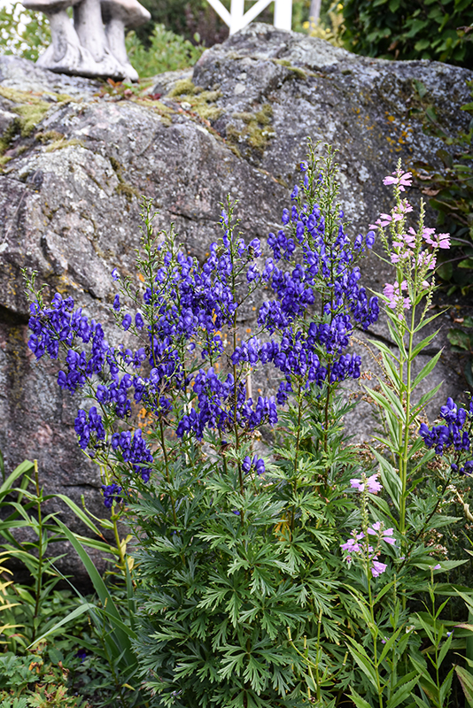 Planting & Growing Common Monkshood will grow to be about 3 feet tall at maturity extending to 4 feet tall with the flowers, with a spread of 24 inches. It tends to be leggy, with a typical clearance of 1 foot from the ground, and should be underplanted with lower-growing perennials. The flower stalks can be weak and so it may require staking in exposed sites or excessively rich soils. It grows at a medium rate, and under ideal conditions can be expected to live for approximately 15 years. As an herbaceous perennial, this plant will usually die back to the crown each winter, and will regrow from the base each spring. Be careful not to disturb the crown in late winter when it may not be readily seen! This plant performs well in both full sun and full shade. It prefers to grow in average to moist conditions, and shouldn't be allowed to dry out. It is not particular as to soil type or pH. It is highly tolerant of urban pollution and will even thrive in inner city environments. Consider applying a thick mulch around the root zone over the growing season to conserve soil moisture. This species is not originally from North America, and parts of it are known to be toxic to humans and animals, so care should be exercised in planting it around children and pets. It can be propagated by division. Common Monkshood is a fine choice for the garden, but it is also a good selection for planting in outdoor pots and containers. With its upright habit of growth, it is best suited for use as a 'thriller' in the 'spiller-thriller-filler' container combination; plant it near the center of the pot, surrounded by smaller plants and those that spill over the edges. It is even sizeable enough that it can be grown alone in a suitable container. Note that when growing plants in outdoor containers and baskets, they may require more frequent waterings than they would in the yard or garden. Be aware that in our climate, most plants cannot be expected to survive the winter if left in containers outdoors, and this plant is no exception. Contact our experts for more information on how to protect it over the winter months. Characteristics