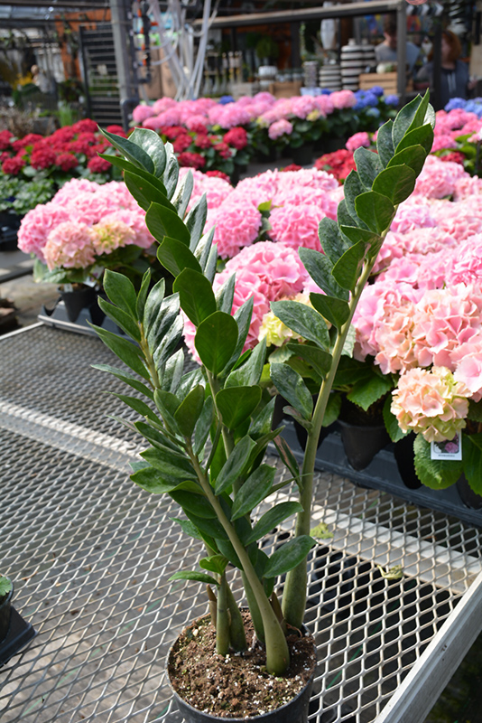 Other Names: Eternity Plant Description: A popular foliage plant that has proved itself to be durable for indoor spaces, handling low light, drought, and abuse; attractive, glossy green oval leaves arranged in pairs along the stems; perfect for office environments Features & Attributes ZZ Plant's attractive oval pinnately compound leaves emerge light green, turning dark green in colour throughout the year on a plant with an upright spreading habit of growth. This is an herbaceous evergreen houseplant with an upright spreading habit of growth. This plant can be pruned at any time to keep it looking its best. Planting & Growing When grown indoors, ZZ Plant can be expected to grow to be about 3 feet tall at maturity, with a spread of 3 feet. It grows at a slow rate, and under ideal conditions can be expected to live for approximately 30 years. This houseplant performs well in both bright or indirect sunlight and strong artificial light, and can therefore be situated in almost any well-lit room or location. It prefers dry to average moisture levels with very well-drained soil, and may die if left in standing water for any length of time. This plant should be watered when the surface of the soil gets dry, and will need watering approximately once each week. Be aware that your particular watering schedule may vary depending on its location in the room, the pot size, plant size and other conditions; if in doubt, ask one of our experts in the store for advice. It will benefit from a regular feeding with a general-purpose fertilizer with every second or third watering. It is not particular as to soil type or pH; an average potting soil should work just fine. Be warned that parts of this plant are known to be toxic to humans and animals, so special care should be exercised if growing it around children and pets. There are many factors that will affect the ultimate height, spread and overall performance of a plant when grown indoors; among them, the size of the pot it's growing in, the amount of light it receives, watering frequency, the pruning regimen and repotting schedule. Use the information described here as a guideline only; individual performance can and will vary. Please contact the store to speak with one of our experts if you are interested in further details concerning recommendations on pot size, watering, pruning, repotting, etc. -- THIS IS A HOUSEPLANT AND IS NOT MEANT TO SURVIVE THE WINTER OUTDOORS IN OUR CLIMATE -- Characteristics