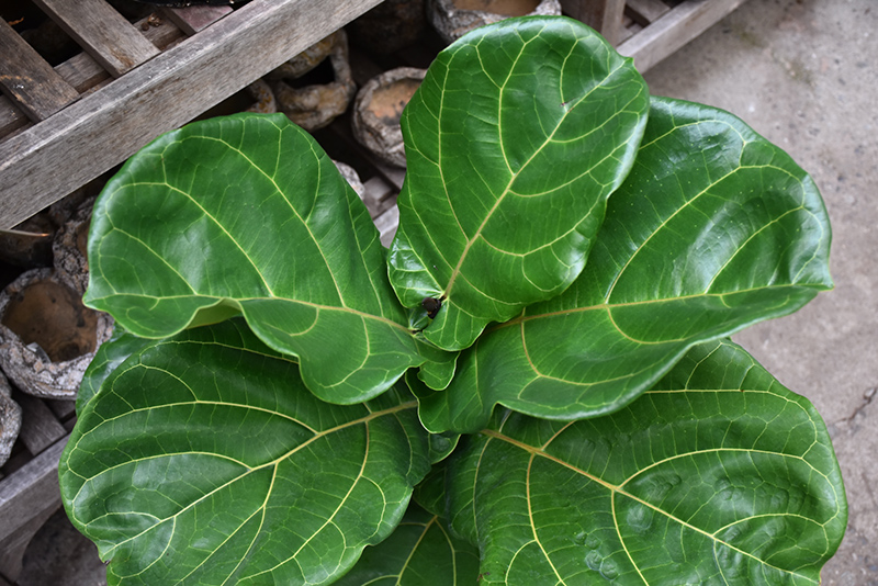 Other Names: Fiddleleaf Fig, Fiddle-leaf Fig Description: Primarily grown for foliage, with huge, fiddle shaped leaves; in frost free areas this variety can grow quite large, howerver it can be maintained as a house or patio plant in colder climates; rarely flowers or fruits outside native habitat Features & Attributes Fiddle Leaf Fig's attractive large glossy oval leaves remain green in colour with distinctive chartreuse veins throughout the year on a plant with an oval habit of growth. This is a multi-stemmed evergreen houseplant with a shapely oval form. This plant may benefit from an occasional pruning to look its best. Planting & Growing When grown indoors, Fiddle Leaf Fig can be expected to grow to be about 6 feet tall at maturity, with a spread of 4 feet. It grows at a medium rate, and under ideal conditions can be expected to live for approximately 100 years. This houseplant will do well in a location that gets either direct or indirect sunlight, although it will usually require a more brightly-lit environment than what artificial indoor lighting alone can provide. It does best in average to evenly moist soil, but will not tolerate standing water. The surface of the soil shouldn't be allowed to dry out completely, and so you should expect to water this plant once and possibly even twice each week. Be aware that your particular watering schedule may vary depending on its location in the room, the pot size, plant size and other conditions; if in doubt, ask one of our experts in the store for advice. It is not particular as to soil type, but has a definite preference for acidic soil. Contact the store for specific recommendations on pre-mixed potting soil for this plant. Be warned that parts of this plant are known to be toxic to humans and animals, so special care should be exercised if growing it around children and pets. There are many factors that will affect the ultimate height, spread and overall performance of a plant when grown indoors; among them, the size of the pot it's growing in, the amount of light it receives, watering frequency, the pruning regimen and repotting schedule. Use the information described here as a guideline only; individual performance can and will vary. Please contact the store to speak with one of our experts if you are interested in further details concerning recommendations on pot size, watering, pruning, repotting, etc. -- THIS IS A HOUSEPLANT AND IS NOT MEANT TO SURVIVE THE WINTER OUTDOORS IN OUR CLIMATE -- Characteristics