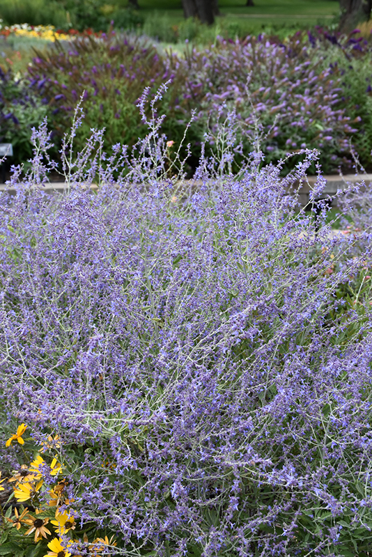 Planting & Growing Crazy Blue Russian Sage will grow to be about 16 inches tall at maturity, with a spread of 16 inches. When grown in masses or used as a bedding plant, individual plants should be spaced approximately 14 inches apart. It grows at a fast rate, and under ideal conditions can be expected to live for approximately 10 years. As an herbaceous perennial, this plant will usually die back to the crown each winter, and will regrow from the base each spring. Be careful not to disturb the crown in late winter when it may not be readily seen! This plant should only be grown in full sunlight. It prefers dry to average moisture levels with very well-drained soil, and will often die in standing water. It is considered to be drought-tolerant, and thus makes an ideal choice for a low-water garden or xeriscape application. It is not particular as to soil type, but has a definite preference for alkaline soils. It is highly tolerant of urban pollution and will even thrive in inner city environments. This is a selected variety of a species not originally from North America. Characteristics