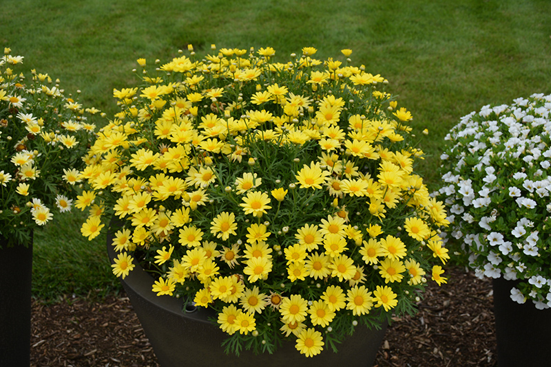 Planting & Growing Golden Butterfly™ Marguerite Daisy will grow to be about 18 inches tall at maturity, with a spread of 18 inches. This fast-growing annual will normally live for one full growing season, needing replacement the following year. This plant does best in full sun to partial shade. It does best in average to evenly moist conditions, but will not tolerate standing water. It is not particular as to soil type or pH. It is highly tolerant of urban pollution and will even thrive in inner city environments. This is a selected variety of a species not originally from North America. It can be propagated by cuttings; however, as a cultivated variety, be aware that it may be subject to certain restrictions or prohibitions on propagation. Golden Butterfly™ Marguerite Daisy is a fine choice for the garden, but it is also a good selection for planting in outdoor pots and containers. It is often used as a 'filler' in the 'spiller-thriller-filler' container combination, providing a mass of flowers against which the larger thriller plants stand out. Note that when growing plants in outdoor containers and baskets, they may require more frequent waterings than they would in the yard or garden. Characteristics