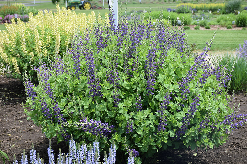 Planting & Growing Decadence® Sparkling Sapphires False Indigo will grow to be about 30 inches tall at maturity, with a spread of 3 feet. It tends to be leggy, with a typical clearance of 1 foot from the ground, and should be underplanted with lower-growing perennials. It grows at a slow rate, and under ideal conditions can be expected to live for approximately 25 years. As an herbaceous perennial, this plant will usually die back to the crown each winter, and will regrow from the base each spring. Be careful not to disturb the crown in late winter when it may not be readily seen! This plant does best in full sun to partial shade. It is very adaptable to both dry and moist growing conditions, but will not tolerate any standing water. It is considered to be drought-tolerant, and thus makes an ideal choice for a low-water garden or xeriscape application. It is not particular as to soil type, but has a definite preference for alkaline soils, and is able to handle environmental salt. It is somewhat tolerant of urban pollution. This particular variety is an interspecific hybrid. It can be propagated by division; however, as a cultivated variety, be aware that it may be subject to certain restrictions or prohibitions on propagation. Decadence® Sparkling Sapphires False Indigo is a fine choice for the garden, but it is also a good selection for planting in outdoor pots and containers. With its upright habit of growth, it is best suited for use as a 'thriller' in the 'spiller-thriller-filler' container combination; plant it near the center of the pot, surrounded by smaller plants and those that spill over the edges. It is even sizeable enough that it can be grown alone in a suitable container. Note that when growing plants in outdoor containers and baskets, they may require more frequent waterings than they would in the yard or garden. Be aware that in our climate, most plants cannot be expected to survive the winter if left in containers outdoors, and this plant is no exception. Contact our experts for more information on how to protect it over the winter months. Characteristics
