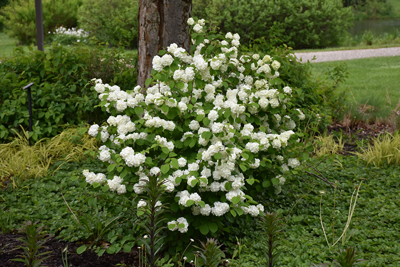 Hardiness Zone: 6 Brand: First Editions Description: A truly breathtaking shrub when in bloom; baseball sized emerging blooms with a tinge of green mature quickly to snowy white; attractive upward branching and good fall color; makes a fantastic specimen shrub Ornamental Features First Editions® Opening Day™ Doublefile Viburnum is draped in stunning balls of white flowers with lime green overtones held atop the branches from mid to late spring, which emerge from distinctive lime green flower buds. It has dark green deciduous foliage. The serrated pointy leaves turn outstanding shades of red and in the fall. Landscape Attributes First Editions® Opening Day™ Doublefile Viburnum is a multi-stemmed deciduous shrub with an upright spreading habit of growth. Its average texture blends into the landscape, but can be balanced by one or two finer or coarser trees or shrubs for an effective composition. This is a relatively low maintenance shrub, and should only be pruned after flowering to avoid removing any of the current season's flowers. It is a good choice for attracting birds to your yard, but is not particularly attractive to deer who tend to leave it alone in favor of tastier treats. It has no significant negative characteristics. First Editions® Opening Day™ Doublefile Viburnum is recommended for the following landscape applications;