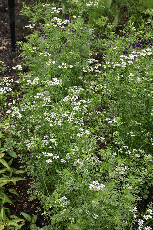Planting & Growing Santo Cilantro will grow to be about 18 inches tall at maturity extending to 24 inches tall with the flowers, with a spread of 18 inches. Its foliage tends to remain dense right to the ground, not requiring facer plants in front. This fast-growing annual will normally live for one full growing season, needing replacement the following year. This plant is typically grown in a designated herb garden. It does best in full sun to partial shade. It does best in average to evenly moist conditions, but will not tolerate standing water. It is not particular as to soil pH, but grows best in rich soils. It is somewhat tolerant of urban pollution. This is a selected variety of a species not originally from North America. Santo Cilantro is a good choice for the edible garden, but it is also well-suited for use in outdoor pots and containers. It can be used either as 'filler' or as a 'thriller' in the 'spiller-thriller-filler' container combination, depending on the height and form of the other plants used in the container planting. Note that when growing plants in outdoor containers and baskets, they may require more frequent waterings than they would in the yard or garden. Characteristics