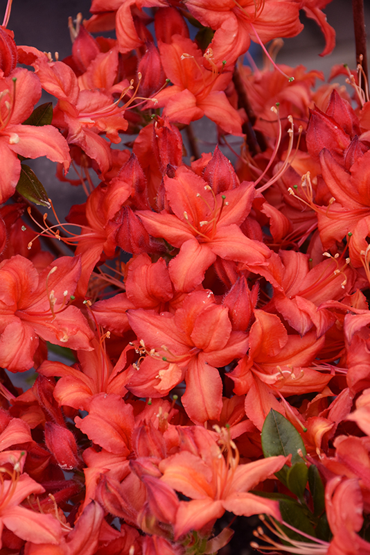 Planting & Growing Electric Lights™ Red Azalea will grow to be about 5 feet tall at maturity, with a spread of 4 feet. It tends to be a little leggy, with a typical clearance of 1 foot from the ground, and is suitable for planting under power lines. It grows at a slow rate, and under ideal conditions can be expected to live for 40 years or more. This shrub does best in full sun to partial shade. You may want to keep it away from hot, dry locations that receive direct afternoon sun or which get reflected sunlight, such as against the south side of a white wall. It requires an evenly moist well-drained soil for optimal growth, but will die in standing water. It is very fussy about its soil conditions and must have rich, acidic soils to ensure success, and is subject to chlorosis (yellowing) of the foliage in alkaline soils. It is somewhat tolerant of urban pollution, and will benefit from being planted in a relatively sheltered location. Consider applying a thick mulch around the root zone in winter to protect it in exposed locations or colder microclimates. This particular variety is an interspecific hybrid. Characteristics