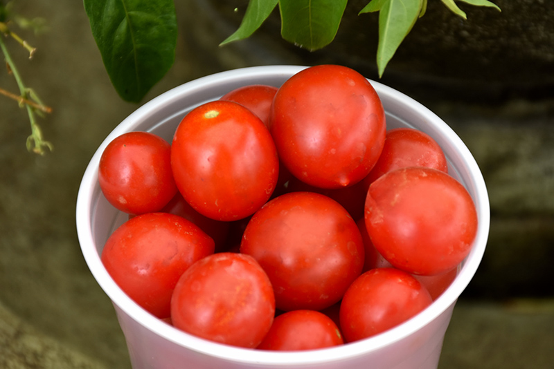 Hardiness Zone: (annual) Group/Class: Cherry/Grape-Determinate Description: Known for high yields of fruit, this cascading variety produces beautiful clusters of bright red cherry tomatoes; sweet flavor that is perfect for salads, snacking, pastas and pickling; perfect for upside planters, hanging baskets and patio containers Edible Qualities Topsy Tom Tomato is an annual vegetable plant that is commonly grown for its edible qualities, although it does have ornamental merits as well. It produces small clusters of red round tomatoes (which are technically 'berries') with red flesh which are usually ready for picking from mid summer to early fall. This is a determinate variety, which means it bears a full crop all at once. The tomatoes have a sweet taste with a juicy texture and a distinctive fragrance. The tomatoes are most often used in the following ways: