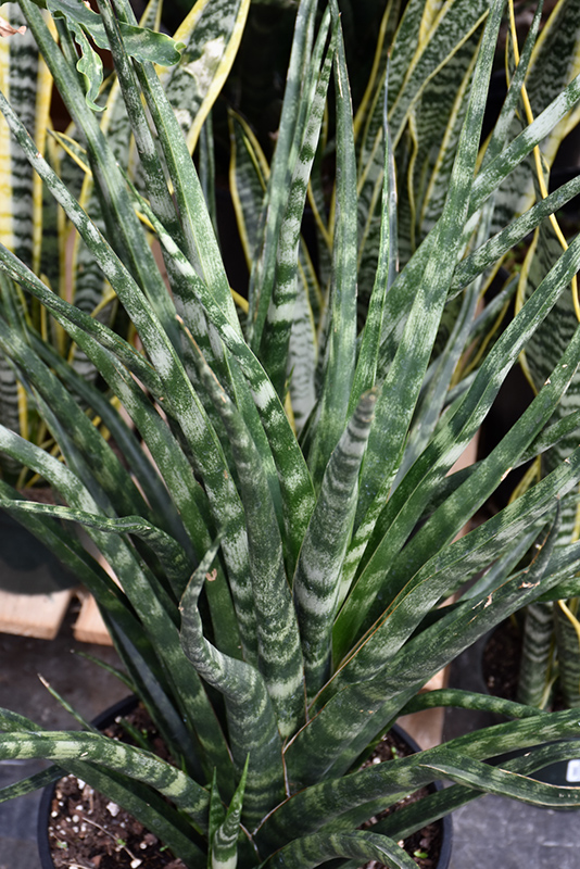 Description: A wonderful compact, fountain-like shaped that produces slow growing, stemless cylindrical succulent leaves; dark green with pale green bands; easy to grow and low maintenance, perfect for containers in any area of the house Features & Attributes Mikado Cylindrical Snake Plant features dainty spikes of fragrant white tubular flowers rising above the foliage in mid spring. Its attractive succulent spiny leaves remain green in colour with prominent light green stripes throughout the year. This is an herbaceous evergreen houseplant with an upright spreading habit of growth. This plant should not require much pruning, except when necessary to keep it looking its best. Planting & Growing When grown indoors, Mikado Cylindrical Snake Plant can be expected to grow to be about 3 feet tall at maturity, with a spread of 18 inches. It grows at a slow rate, and under ideal conditions can be expected to live for approximately 10 years. This houseplant will do well in a location that gets either direct or indirect sunlight, although it will usually require a more brightly-lit environment than what artificial indoor lighting alone can provide. It prefers dry to average moisture levels with very well-drained soil, and may die if left in standing water for any length of time. This plant should be watered when the surface of the soil gets dry, and will need watering approximately once each week. Be aware that your particular watering schedule may vary depending on its location in the room, the pot size, plant size and other conditions; if in doubt, ask one of our experts in the store for advice. It is not particular as to soil pH, but grows best in sandy soil. Contact the store for specific recommendations on pre-mixed potting soil for this plant. Be warned that parts of this plant are known to be toxic to humans and animals, so special care should be exercised if growing it around children and pets. There are many factors that will affect the ultimate height, spread and overall performance of a plant when grown indoors; among them, the size of the pot it's growing in, the amount of light it receives, watering frequency, the pruning regimen and repotting schedule. Use the information described here as a guideline only; individual performance can and will vary. Please contact the store to speak with one of our experts if you are interested in further details concerning recommendations on pot size, watering, pruning, repotting, etc. -- THIS IS A HOUSEPLANT AND IS NOT MEANT TO SURVIVE THE WINTER OUTDOORS IN OUR CLIMATE -- Characteristics