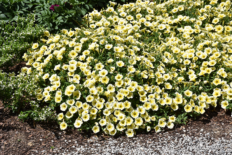 Hardiness Zone: (annual) Brand: Ball Description: This selection will stand out, with fast growing plants that bloom freely all season, in landscapes or containers; outstanding branching with a trailing habit, this variety produces bright yellow blooms and dark green foliage; low maintenance Ornamental Features Bee's Knees Petunia is smothered in stunning buttery yellow trumpet-shaped flowers with yellow centers at the ends of the stems from mid spring to early fall. Its pointy leaves remain dark green in colour throughout the season. Landscape Attributes Bee's Knees Petunia is a dense herbaceous annual with a trailing habit of growth, eventually spilling over the edges of hanging baskets and containers. Its medium texture blends into the garden, but can always be balanced by a couple of finer or coarser plants for an effective composition. This plant will require occasional maintenance and upkeep. Trim off the flower heads after they fade and die to encourage more blooms late into the season. It is a good choice for attracting bees and hummingbirds to your yard, but is not particularly attractive to deer who tend to leave it alone in favor of tastier treats. It has no significant negative characteristics. Bee's Knees Petunia is recommended for the following landscape applications;