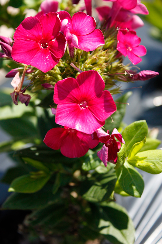 Planting & Growing Bambini® Cherry Crush Dwarf Garden Phlox will grow to be about 10 inches tall at maturity, with a spread of 14 inches. When grown in masses or used as a bedding plant, individual plants should be spaced approximately 12 inches apart. It grows at a medium rate, and under ideal conditions can be expected to live for approximately 10 years. As an herbaceous perennial, this plant will usually die back to the crown each winter, and will regrow from the base each spring. Be careful not to disturb the crown in late winter when it may not be readily seen! This plant does best in full sun to partial shade. It does best in average to evenly moist conditions, but will not tolerate standing water. It is not particular as to soil type or pH. It is highly tolerant of urban pollution and will even thrive in inner city environments. This is a selection of a native North American species. It can be propagated by division; however, as a cultivated variety, be aware that it may be subject to certain restrictions or prohibitions on propagation. Bambini® Cherry Crush Dwarf Garden Phlox is a fine choice for the garden, but it is also a good selection for planting in outdoor pots and containers. It is often used as a 'filler' in the 'spiller-thriller-filler' container combination, providing a mass of flowers against which the larger thriller plants stand out. Note that when growing plants in outdoor containers and baskets, they may require more frequent waterings than they would in the yard or garden. Be aware that in our climate, most plants cannot be expected to survive the winter if left in containers outdoors, and this plant is no exception. Contact our experts for more information on how to protect it over the winter months. Characteristics