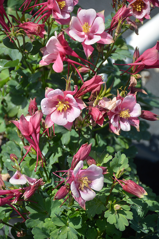 Hardiness Zone: 4 Other Names: Wild Columbine, Granny's Bonnet Brand: Syngenta Flowers Description: Showy, upward facing rose and pink flowers, featuring white cups and long, graceful spurs rise above bushy, deep cut foliage; a great long lasting cutflower; good for naturalizing partially shaded areas, and is also deer resistant Ornamental Features Kirigami™ Rose and Pink Columbine features bold nodding pink bell-shaped flowers with white overtones, yellow eyes and rose spurs at the ends of the stems from late spring to early summer. The flowers are excellent for cutting. Its deeply cut ferny compound leaves remain green in colour throughout the season. Landscape Attributes Kirigami™ Rose and Pink Columbine is an herbaceous perennial with an upright spreading habit of growth. Its relatively fine texture sets it apart from other garden plants with less refined foliage. This is a relatively low maintenance plant, and should be cut back in late fall in preparation for winter. Deer don't particularly care for this plant and will usually leave it alone in favor of tastier treats. Gardeners should be aware of the following characteristic(s) that may warrant special consideration;