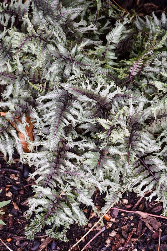 Hardiness Zone: 3 Other Names: Crested Japanese Painted Fern Brand: Proven Winners Description: An excellent choice for adding fine textures to shaded garden beds and borders; features a low growing habit with arching silvery green fronds with double crested tips and deep red midribs; easy to grow, requiring little to no maintenance Ornamental Features Crested Surf Japanese Painted Fern is primarily valued in the garden for its cascading habit of growth. Its attractive ferny bipinnately compound leaves emerge deep purple in spring, turning grayish green in colour with showy white variegation and tinges of silver throughout the season. The burgundy stems are very colorful and add to the overall interest of the plant. Landscape Attributes Crested Surf Japanese Painted Fern is a dense herbaceous perennial with a shapely form and gracefully arching foliage. It brings an extremely fine and delicate texture to the garden composition and should be used to full effect. This is a relatively low maintenance plant, and usually looks its best without pruning, although it will tolerate pruning. Deer don't particularly care for this plant and will usually leave it alone in favor of tastier treats. It has no significant negative characteristics. Crested Surf Japanese Painted Fern is recommended for the following landscape applications;
