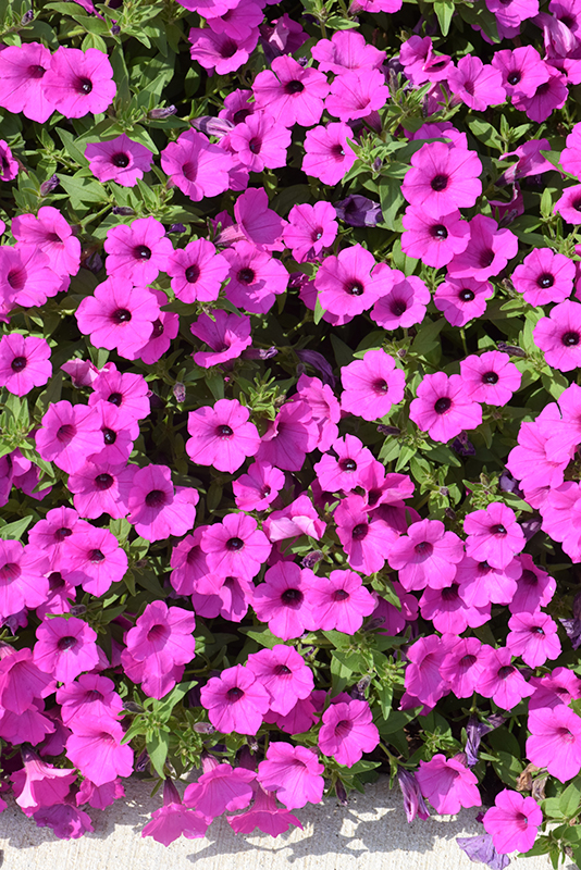 Planting & Growing Supertunia Vista® Jazzberry® Petunia will grow to be about 24 inches tall at maturity, with a spread of 3 feet. When grown in masses or used as a bedding plant, individual plants should be spaced approximately 20 inches apart. Its foliage tends to remain dense right to the ground, not requiring facer plants in front. This fast-growing annual will normally live for one full growing season, needing replacement the following year. This plant does best in full sun to partial shade. It prefers to grow in average to moist conditions, and shouldn't be allowed to dry out. It is not particular as to soil type or pH. It is highly tolerant of urban pollution and will even thrive in inner city environments. This particular variety is an interspecific hybrid. It can be propagated by cuttings; however, as a cultivated variety, be aware that it may be subject to certain restrictions or prohibitions on propagation. Supertunia Vista® Jazzberry® Petunia is a fine choice for the garden, but it is also a good selection for planting in outdoor containers and hanging baskets. Because of its trailing habit of growth, it is ideally suited for use as a 'spiller' in the 'spiller-thriller-filler' container combination; plant it near the edges where it can spill gracefully over the pot. It is even sizeable enough that it can be grown alone in a suitable container. Note that when growing plants in outdoor containers and baskets, they may require more frequent waterings than they would in the yard or garden. Characteristics