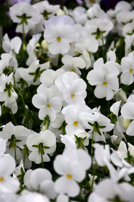 Hardiness Zone: 4 Other Names: Winter Pansy, Horned Violet Group/Class: Sorbet Series Brand: PanAmerican Seeds Description: A stunning pansy series presenting incredible blooms that immediately command attention; more heat tolerant and cold hardy than other varieties; bright, bold and unique coloring creates visually captivating containers, or border edgings Ornamental Features Sorbet® XP White Pansy has masses of beautiful white flowers with yellow overtones at the ends of the stems from early spring to late fall, which are most effective when planted in groupings. Its crinkled round leaves remain green in colour throughout the season. Landscape Attributes Sorbet® XP White Pansy is an herbaceous perennial with a mounded form. Its relatively fine texture sets it apart from other garden plants with less refined foliage. This plant will require occasional maintenance and upkeep, and should only be pruned after flowering to avoid removing any of the current season's flowers. Deer don't particularly care for this plant and will usually leave it alone in favor of tastier treats. Gardeners should be aware of the following characteristic(s) that may warrant special consideration;