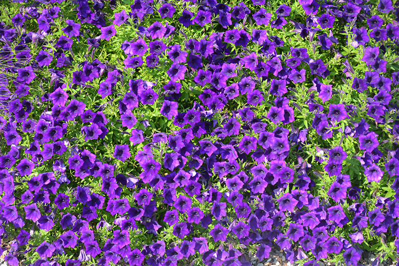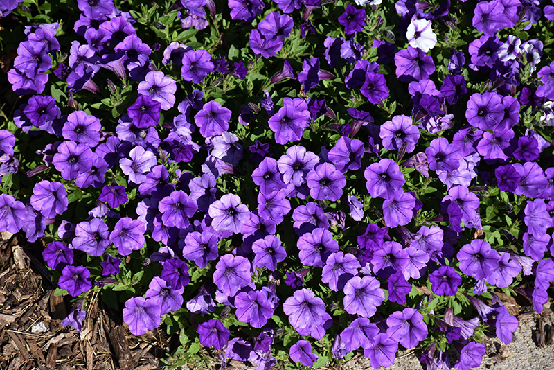 Planting & Growing Supertunia® Mini Vista™ Ultramarine Petunia will grow to be about 8 inches tall at maturity extending to 12 inches tall with the flowers, with a spread of 24 inches. When grown in masses or used as a bedding plant, individual plants should be spaced approximately 20 inches apart. Its foliage tends to remain low and dense right to the ground. This fast-growing annual will normally live for one full growing season, needing replacement the following year. This plant does best in full sun to partial shade. It prefers to grow in average to moist conditions, and shouldn't be allowed to dry out. It is not particular as to soil type or pH. It is highly tolerant of urban pollution and will even thrive in inner city environments. This particular variety is an interspecific hybrid. It can be propagated by cuttings; however, as a cultivated variety, be aware that it may be subject to certain restrictions or prohibitions on propagation. Supertunia® Mini Vista™ Ultramarine Petunia is a fine choice for the garden, but it is also a good selection for planting in outdoor containers and hanging baskets. Because of its trailing habit of growth, it is ideally suited for use as a 'spiller' in the 'spiller-thriller-filler' container combination; plant it near the edges where it can spill gracefully over the pot. Note that when growing plants in outdoor containers and baskets, they may require more frequent waterings than they would in the yard or garden. Characteristics