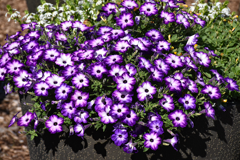 Hardiness Zone: (annual) Group/Class: Supertunia Series Brand: Proven Winners Description: This outstanding variety offers excellent garden performance, as well as in hanging baskets and patio containers; violet-blue flowers with white centers on densely branched plants; heat and drought tolerant; little to no maintenance Ornamental Features Supertunia® Tiara Blue™ Petunia is smothered in stunning violet trumpet-shaped flowers with blue overtones and white centers at the ends of the stems from mid spring to mid fall. Its pointy leaves remain green in colour throughout the season. Landscape Attributes Supertunia® Tiara Blue™ Petunia is a dense herbaceous annual with a trailing habit of growth, eventually spilling over the edges of hanging baskets and containers. Its medium texture blends into the garden, but can always be balanced by a couple of finer or coarser plants for an effective composition. This plant will require occasional maintenance and upkeep. Trim off the flower heads after they fade and die to encourage more blooms late into the season. It is a good choice for attracting butterflies and hummingbirds to your yard, but is not particularly attractive to deer who tend to leave it alone in favor of tastier treats. It has no significant negative characteristics. Supertunia® Tiara Blue™ Petunia is recommended for the following landscape applications;