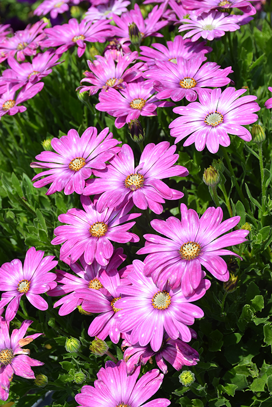 Planting & Growing Zion™ Pink Orbit African Daisy will grow to be about 18 inches tall at maturity, with a spread of 24 inches. When grown in masses or used as a bedding plant, individual plants should be spaced approximately 18 inches apart. Its foliage tends to remain dense right to the ground, not requiring facer plants in front. Although it's not a true annual, this fast-growing plant can be expected to behave as an annual in our climate if left outdoors over the winter, usually needing replacement the following year. As such, gardeners should take into consideration that it will perform differently than it would in its native habitat. This plant should only be grown in full sunlight. It does best in average to evenly moist conditions, but will not tolerate standing water. It is not particular as to soil type or pH. It is highly tolerant of urban pollution and will even thrive in inner city environments. This particular variety is an interspecific hybrid. Zion™ Pink Orbit African Daisy is a fine choice for the garden, but it is also a good selection for planting in outdoor containers and hanging baskets. It can be used either as 'filler' or as a 'thriller' in the 'spiller-thriller-filler' container combination, depending on the height and form of the other plants used in the container planting. Note that when growing plants in outdoor containers and baskets, they may require more frequent waterings than they would in the yard or garden. Characteristics