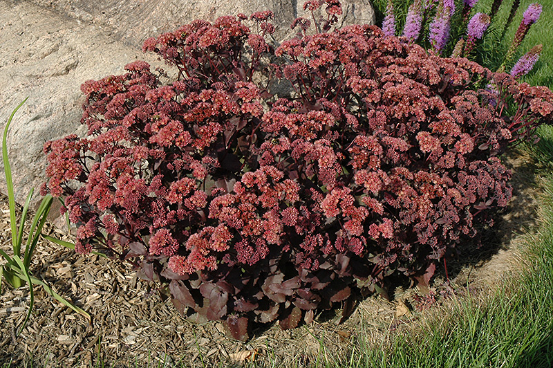 Hardiness Zone: 2 Other Names: Autumn Stonecrop, Showy Stonecrop Description: An exceptional perennial featuring rich reddish-purple foliage all season long and showy rose-pink flowers that emerge from deep purple buds in late summer; incredibly showy in a mass planting, prefers poor soils and dry conditions Ornamental Features Purple Emperor Stonecrop has masses of beautiful clusters of pink flowers at the ends of the stems from late summer to late fall, which emerge from distinctive dark red flower buds, and which are most effective when planted in groupings. The flowers are excellent for cutting. Its attractive large succulent round leaves emerge dark green in spring, turning burgundy in colour throughout the season. The deep purple stems are very colorful and add to the overall interest of the plant. Landscape Attributes Purple Emperor Stonecrop is a dense herbaceous perennial with an upright spreading habit of growth. Its relatively coarse texture can be used to stand it apart from other garden plants with finer foliage. This is a relatively low maintenance plant, and is best cleaned up in early spring before it resumes active growth for the season. It is a good choice for attracting bees and butterflies to your yard, but is not particularly attractive to deer who tend to leave it alone in favor of tastier treats. It has no significant negative characteristics. Purple Emperor Stonecrop is recommended for the following landscape applications;