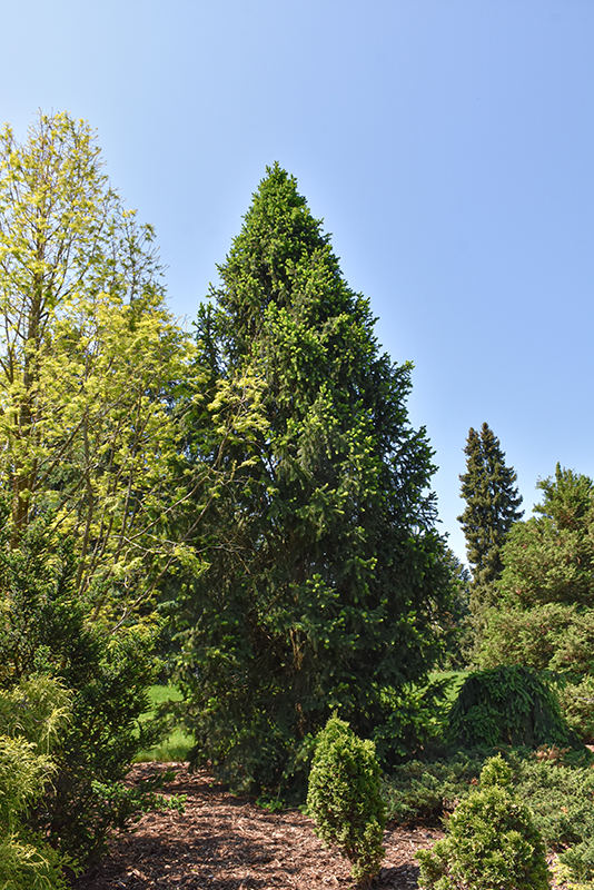 Planting & Growing Columnar Norway Spruce will grow to be about 30 feet tall at maturity, with a spread of 10 feet. It has a low canopy, and should not be planted underneath power lines. It grows at a fast rate, and under ideal conditions can be expected to live for 50 years or more. This tree should only be grown in full sunlight. It does best in average to evenly moist conditions, but will not tolerate standing water. It is not particular as to soil type or pH, and is able to handle environmental salt. It is highly tolerant of urban pollution and will even thrive in inner city environments. This is a selected variety of a species not originally from North America. Characteristics