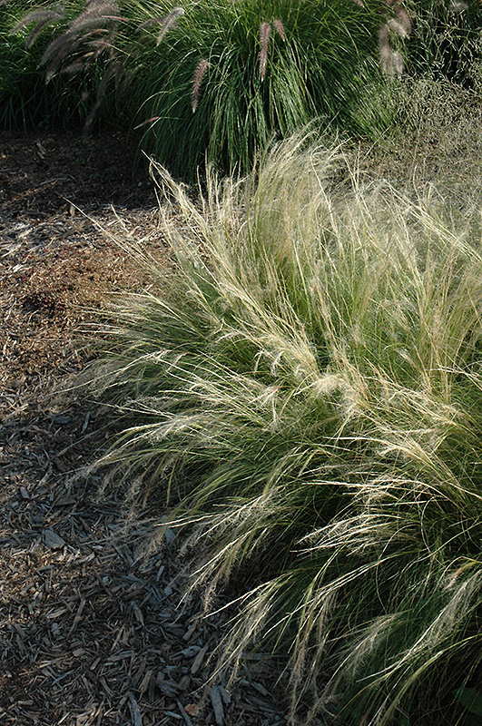 Planting & Growing Pony Tails Mexican Feather Grass will grow to be about 20 inches tall at maturity, with a spread of 24 inches. Its foliage tends to remain dense right to the ground, not requiring facer plants in front. It grows at a medium rate, and under ideal conditions can be expected to live for approximately 20 years. As an herbaceous perennial, this plant will usually die back to the crown each winter, and will regrow from the base each spring. Be careful not to disturb the crown in late winter when it may not be readily seen! This plant does best in full sun to partial shade. It prefers dry to average moisture levels with very well-drained soil, and will often die in standing water. It is considered to be drought-tolerant, and thus makes an ideal choice for a low-water garden or xeriscape application. It is not particular as to soil type or pH. It is somewhat tolerant of urban pollution. This is a selected variety of a species not originally from North America. It can be propagated by division; however, as a cultivated variety, be aware that it may be subject to certain restrictions or prohibitions on propagation. Characteristics