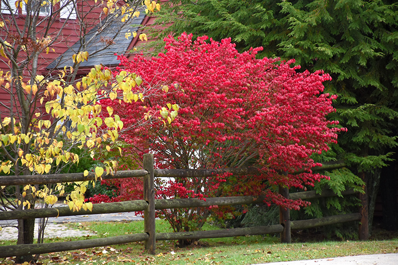 Planting & Growing Compact Winged Burning Bush will grow to be about 7 feet tall at maturity, with a spread of 7 feet. It tends to fill out right to the ground and therefore doesn't necessarily require facer plants in front, and is suitable for planting under power lines. It grows at a slow rate, and under ideal conditions can be expected to live for 50 years or more. This shrub performs well in both full sun and full shade. It is very adaptable to both dry and moist locations, and should do just fine under average home landscape conditions. It is not particular as to soil type or pH. It is highly tolerant of urban pollution and will even thrive in inner city environments. This is a selected variety of a species not originally from North America. Characteristics